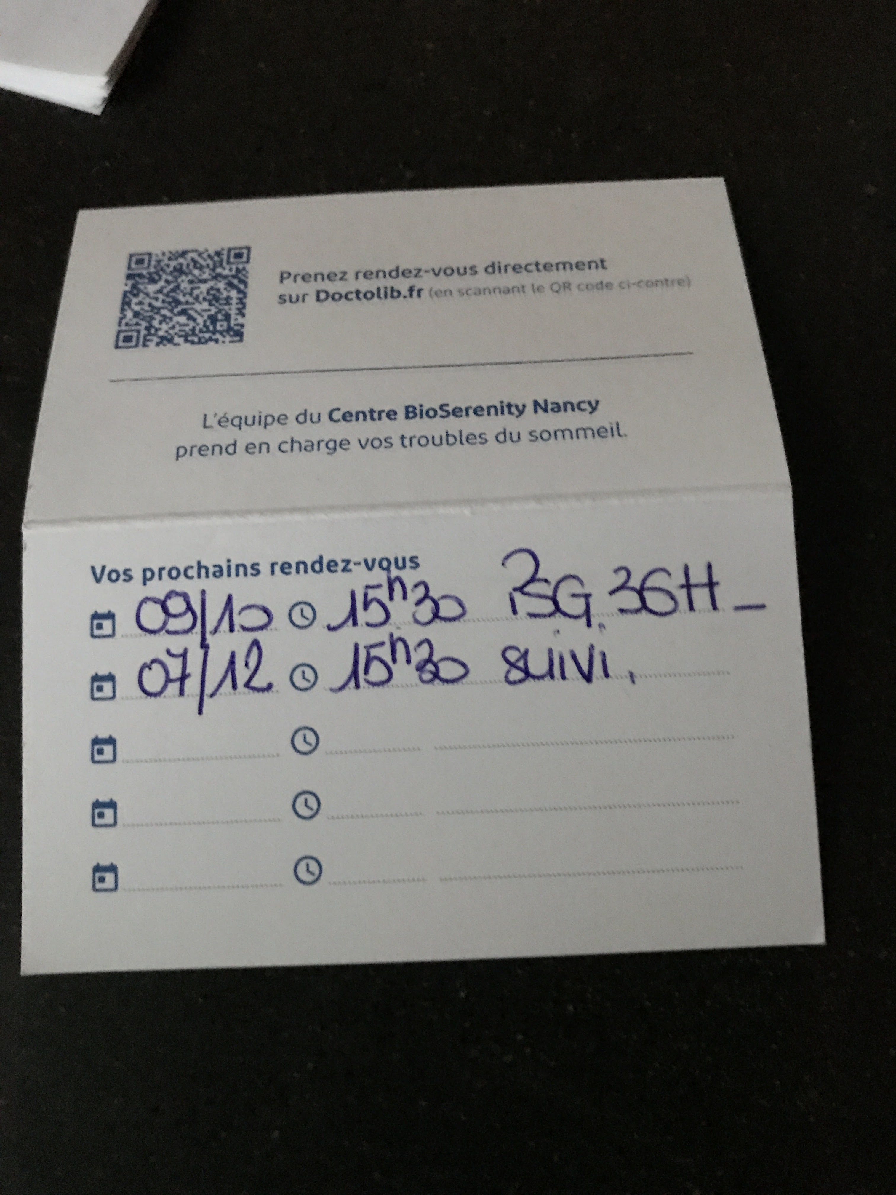 Merci à tous pour votre bonne humeur et la prise en charge efficace de mon problème d'apnée.